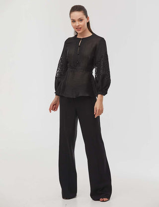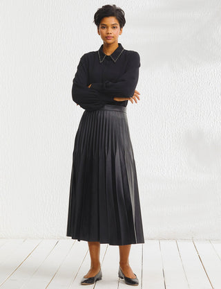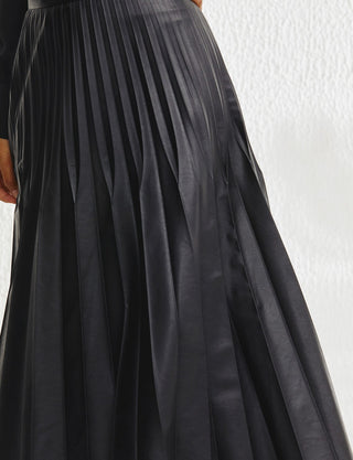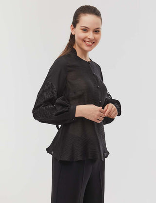 PEARL BEADED BALLOON SLEEVE SATIN DRESS