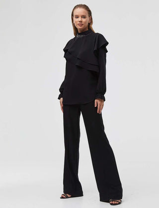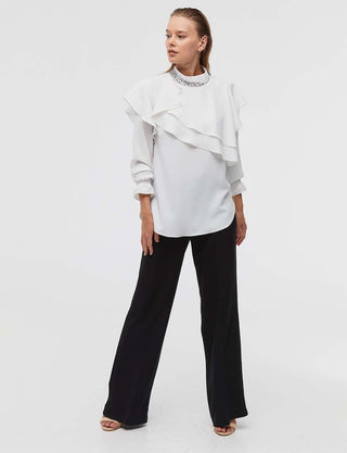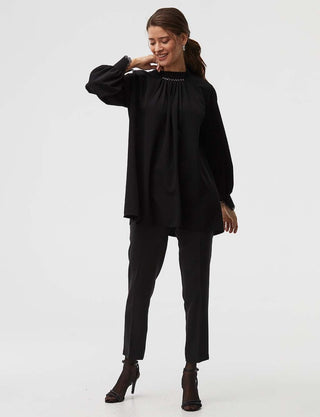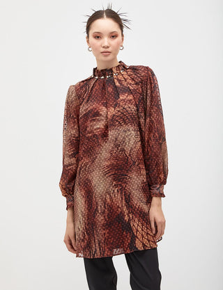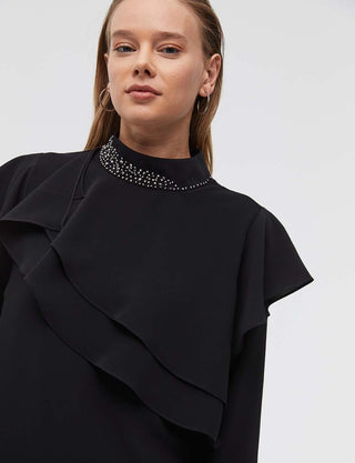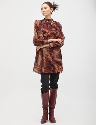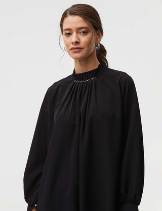 SHIRRED COLLAR NECK POLKA DOT DRESS
